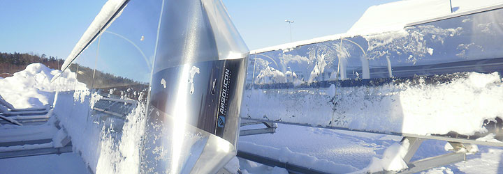 [ingress]En två meter lång Absolicon X10 PVT testas just nu på Institutet för Termodynamik och Värmeteknik (ITW ) i Stuttgart. Mätningarna påbörjades hösten 2011 och